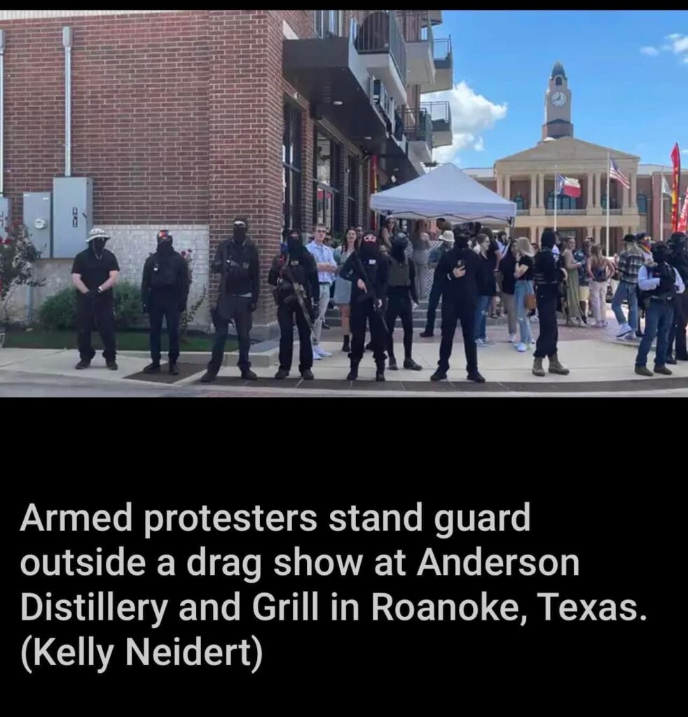 Is that ANTIFA in Texas? Why are they allowed to form a militia and the FBI does not investigate? Imagine if there was a company of armed Christian’s outside a rally …