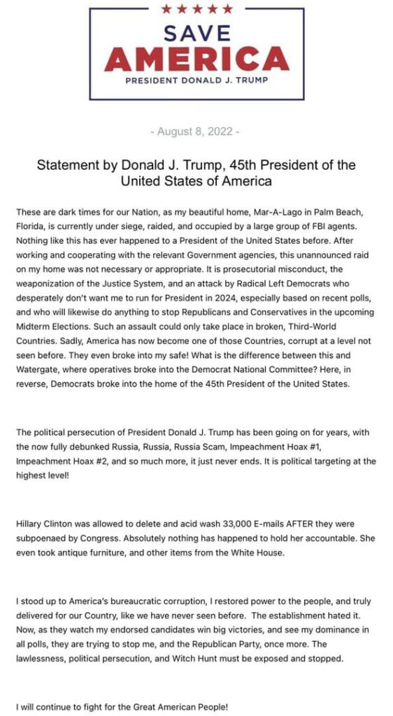 1 thought on “FBI Raids Trump’s Mar-a-Lago Home”