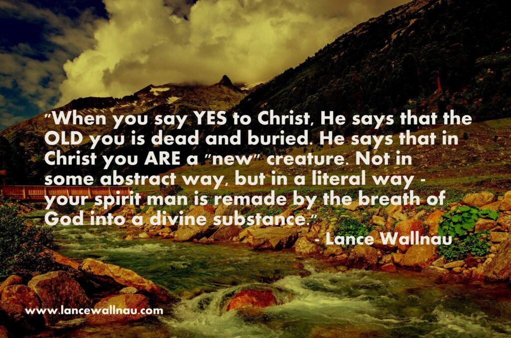 He says that the OLD you is dead and buried. He says that in Christ you ARE a “new” creature. Not in some abstract way, but in a literal way – your spirit man is remade by the breath of God into a divine substance.