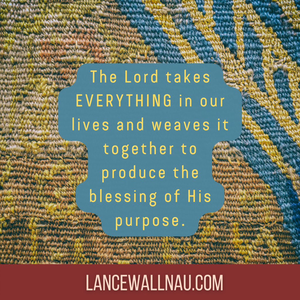 The Lord takes EVERYTHING in our life and weaves it together to produce the blessing of His purpose.