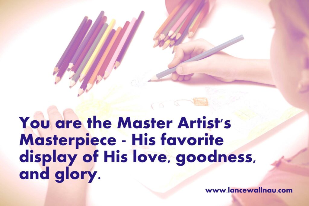 You, my friend, are a work of art. A splendid new species. As a follower of Christ, “hidden in Christ” you are a partaker of His nature and your spirit bears His unique SIGNATURE (a big deal for an artist).