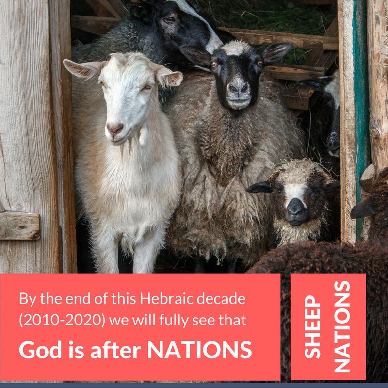 Let's go back and establish what God has been doing during this past Hebraic decade. 2010 was the transition to the year 5770. 70 is significant because the value of 70 is the same as the letter “Ayin” which “means to see.” It is also the number of the nations. By the end of this Hebraic decade (2010-2020) we will fully see that God is after NATIONS – Sheep Nations. We will also see that the devil is solidifying an alliance of Goat nations in response. It is going to get very intense but very glorious. We are getting spiritual eyes to see into the realm of God and the plan of God to disciple the nations. We are also seeing into the realm of the enemy and how the powers of darkness are working through fallen man to produce chaos and conditions ripe for Satan's manipulation of nations and counterfeit of the kingdom. In summary: what we are “seeing” since 2010 is a decade of deeper prophetic perception coming upon the front lines of the body of Christ.